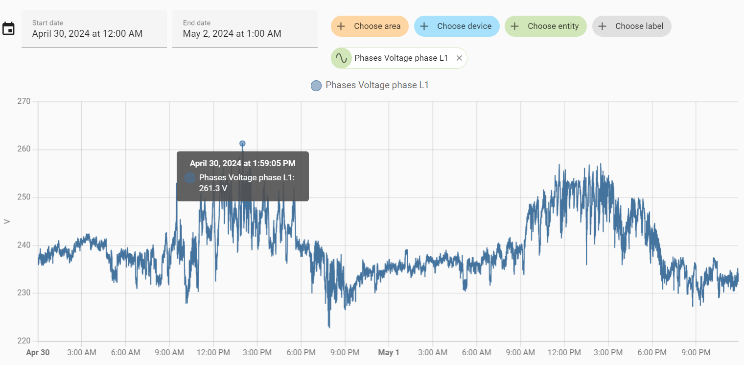 I’ve used this to confirm voltage from grid. Here is stats in Belgium over partly cloudy/sunny days.