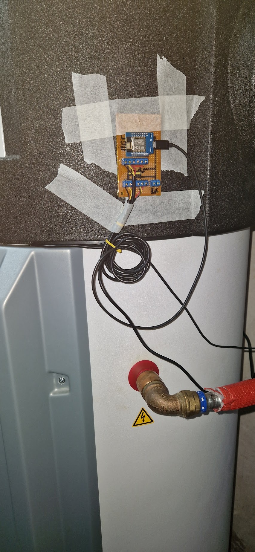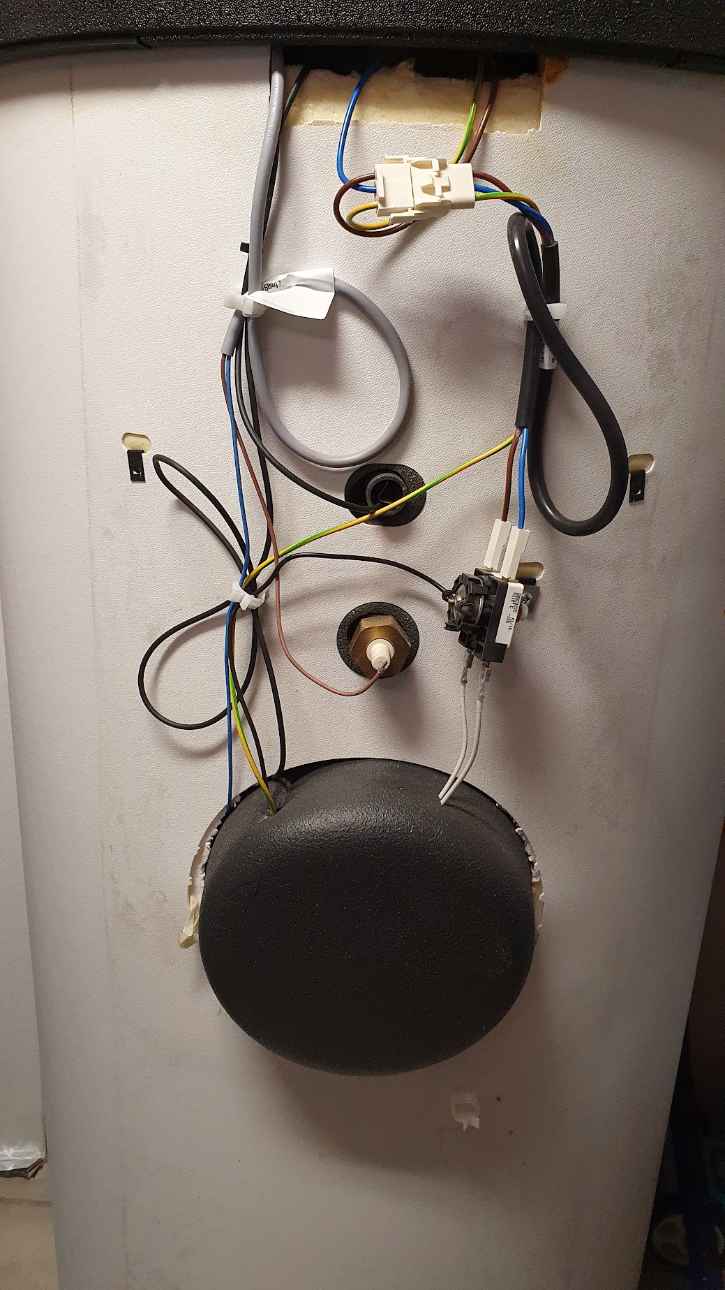 - Last goes under outgoing water pipe insulation.