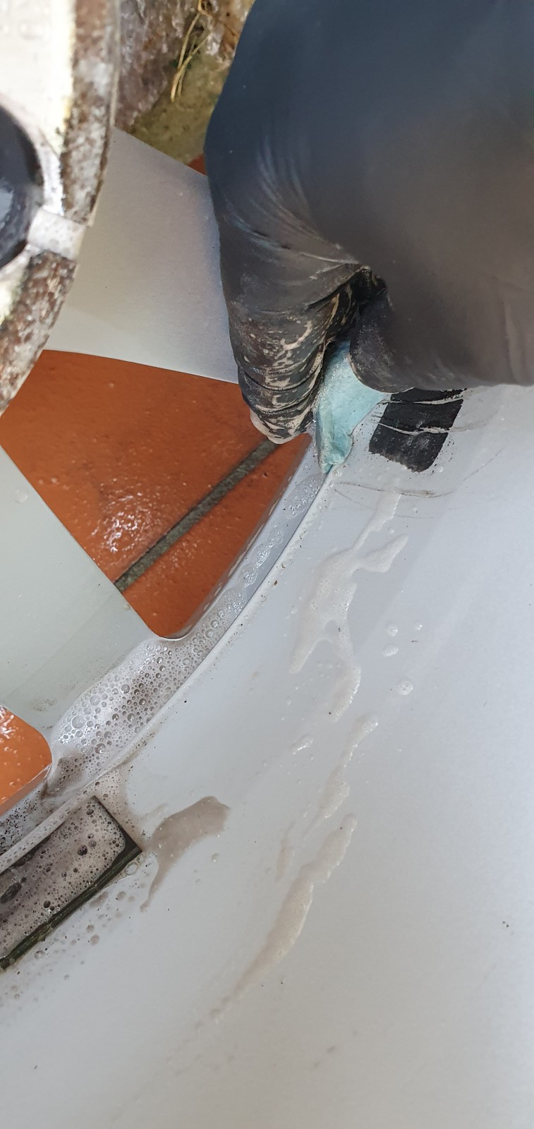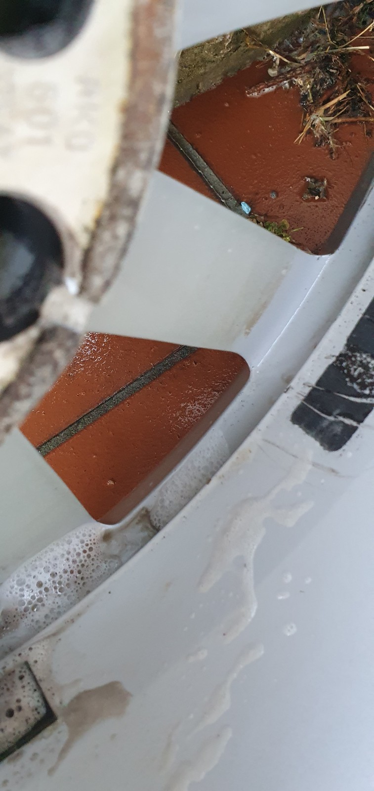 Cette étape ne suffira évidemment pas à tout nettoyer à fond, mais pour un entretien régulier ca sera largement assez. Notez comme le jet puissant du Kärcher n’a pu que légèrement décrasser l’intérieur. C’est le signe d’un nettoyage minutieux à venir. Armez vous de patience!