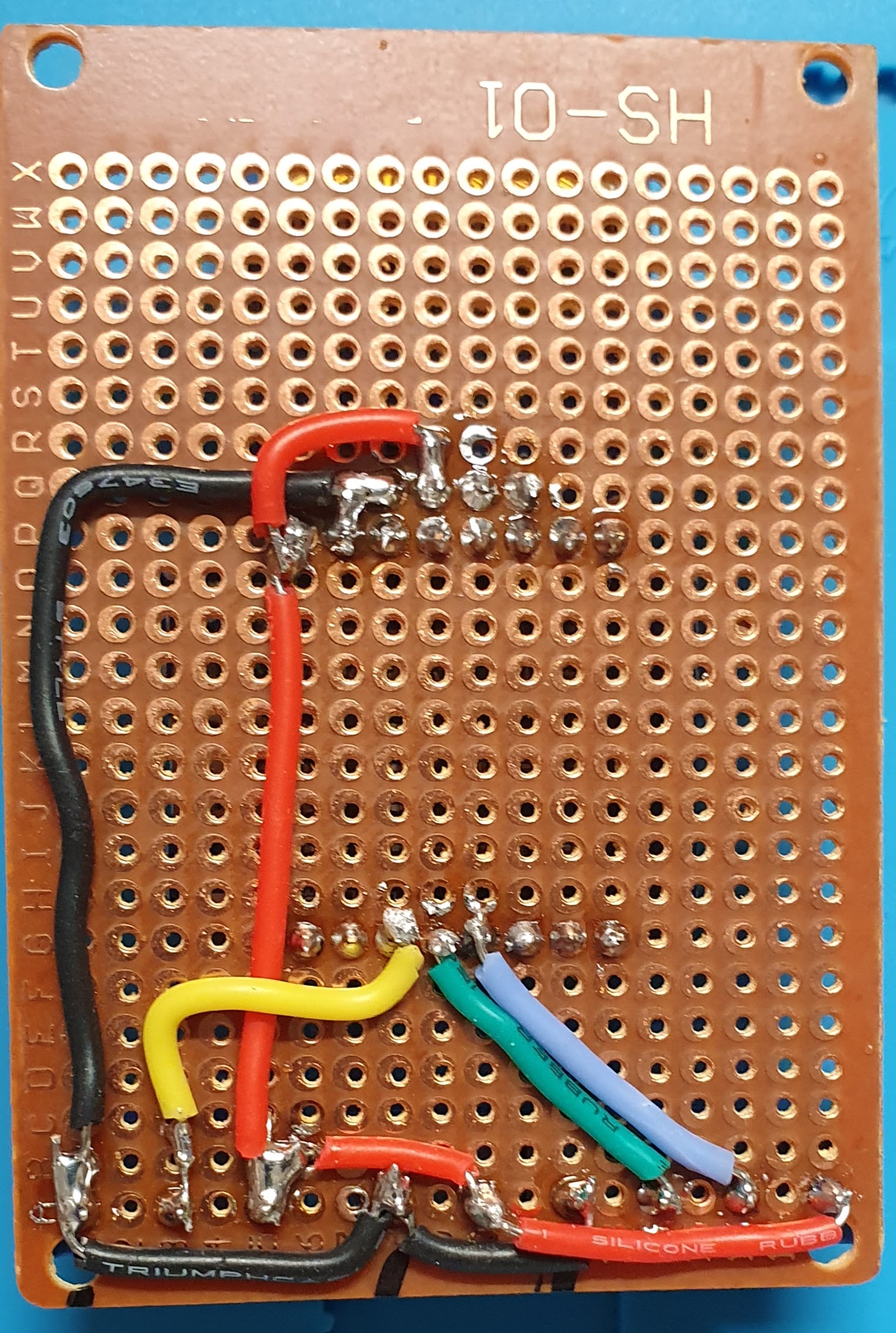 Après quelques tests, j’ai transféré le tout sur une protoboard. Comme je ne compte assembler qu’un seul boitier de ce style, ce n’est pas gênant de devoir y passer plus de temps que de raison.