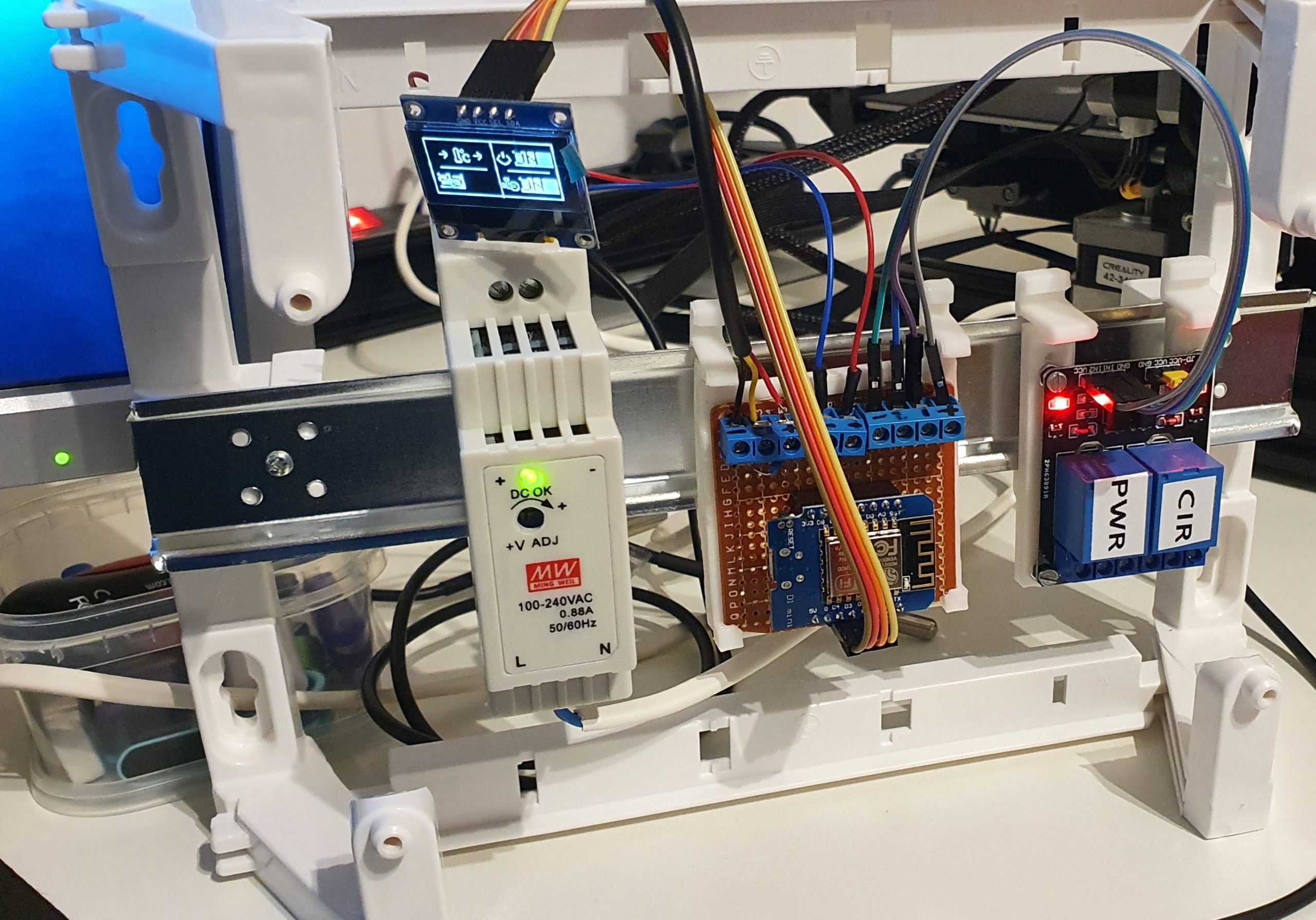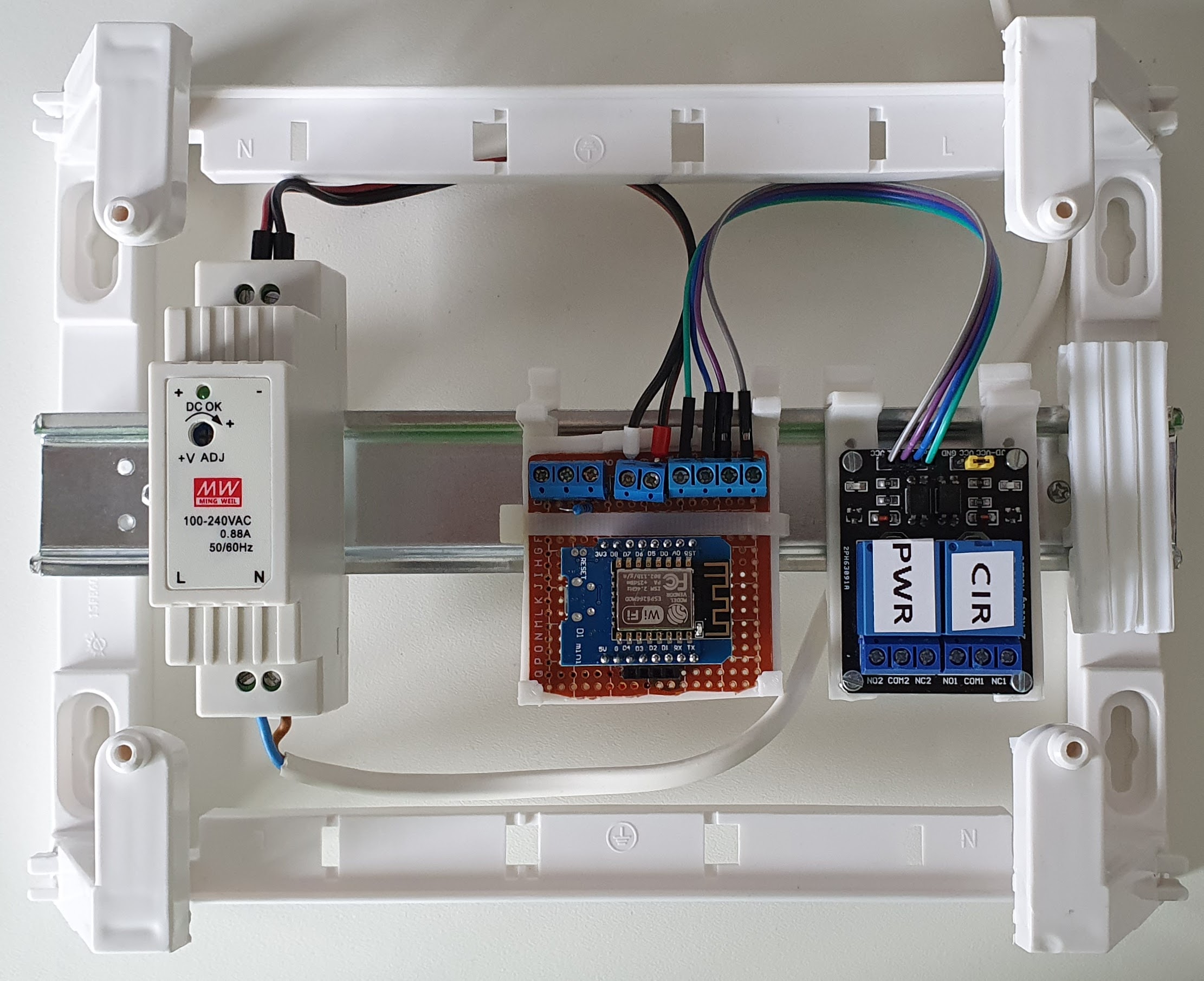 J’ai trouvé ce projet très complet car il m’a permis de me remettre à Homie sur Wemos D1 Mini mais aussi à apprendre à intégrer tout cela dans un boitier standard avec rail DIN. C’était aussi l’occasion de tester la modélisation 3D, pour la fixation de l’électronique sur rail DIN.